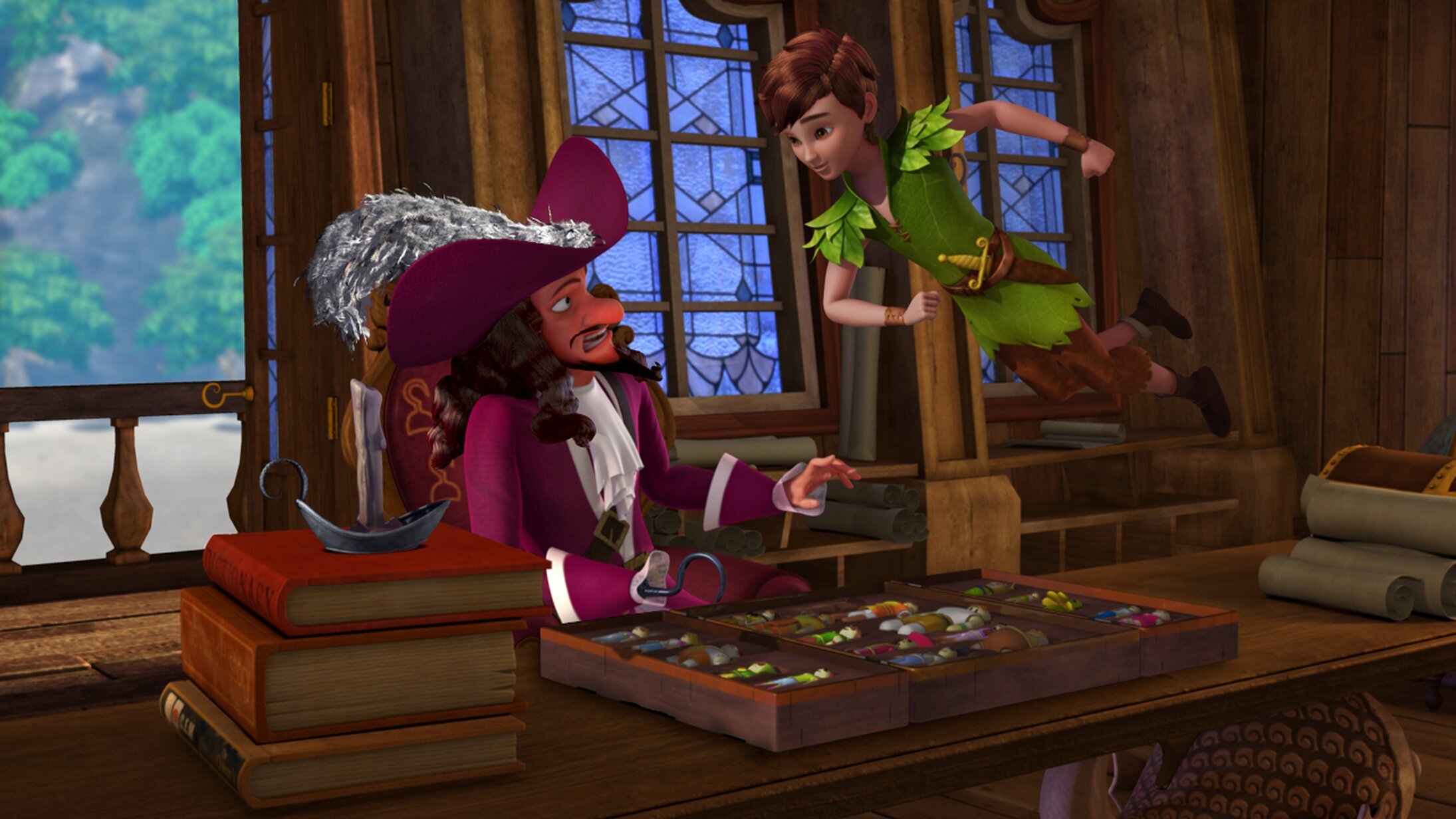 Jaro stiehlt im Indianerdorf eine Schatulle mit Puppen, die die Nimmerland-Einwohner darstellen. Wenn man eine Puppe aktiviert und dann bewegt, macht die betreffende Person genau dasselbe. Der Häuptling benutzt sie, um die jeweilige Person zu heilen. Um sie zu aktivieren, muss man sie in Wasser tauchen. Das weiß Jaro aber nicht. Weil Hook die Puppen als nutzlos ansieht, lässt er die Schatulle ins Meer werfen. Doch Dagan fischt sie wieder heraus. Er nimmt die Puppen mit in den Wald und spielt dort mit der Peter-Pan-Puppe, wodurch sich Peter, der mit den Freunden Verstecken spielt, auf einmal sehr seltsam benimmt. Michael, der zum Verstecken in den Wald gegangen ist, stößt auf Dagan, und die beiden spielen mit den Puppen. Dadurch passieren seltsame Dinge.